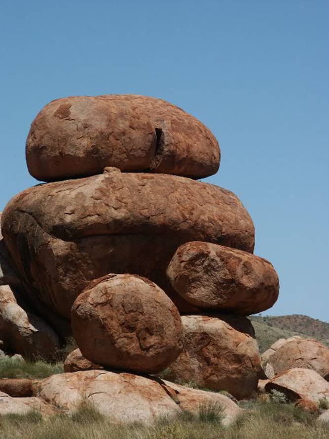 Ok, der erste Teil meiner Fahrt führte mich auf den Stuart Hwy (die einzige geteerte Nord-Süd-Verbindung ausserhalb der Küstenstrassen) bis nach Elliot. Einem kleinen Dorf mit Roadhouse und Pub. Zwischendurch gab es noch einen Verpflegungsstopp in Tennant Creek, der 3. grössten Stadt im NT und eine Besichtigung bei den Devils Marbles. Angeblich sind dies Eier der Regenbogenschlage. In Wahrheit durch Erossion entstandene Riesenkugel wie sie zum Beispiel auch an Westküste der neuseeländischen Südinsel zu finden sind.