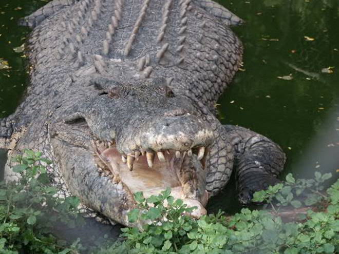 Was macht die einspurige Brücke in Deutschland denn nun so unmöglich? Es ist eigentlich ganz einfach: auf dem Bild sind keinerlei Vorfahrtsregelungen zu erkennen – und auch nicht vorhanden! Eine blanke Katastrophe, und im ´Kohlhaas-Deutschland´, selbst bei nur 20 Fahrzeuge am Tag, fast unvorstellbar. Zurück in Broome führte mich der erste Gang zum Dampfstrahlplatz einer Tankstelle zum Fahrzeugreinigen. Nachmittags gab es dann noch eine Tour durch Malcolm Douglas´ Krokodilfarm hier in der Stadt. Malcolm Douglas ist auch in Deutschland durch seine Reisesendungen (Kabel 1) quer durchs Outback bekannt und weltweit der Krokodilfachmann Nr.1. Es war sehr interessant, ´sitzen´ doch auf der Farm die gefährlichsten Missetäter unter den Krokodilen dieser Welt ein. Taucht irgendwo ein zu aggressives oder menschenhungriges Krokodil auf, ruft man Malcolm Douglas zur Hilfe. Er fängt es ein und bringt es auf seine Farm. So z.B. auch dieses hier: |